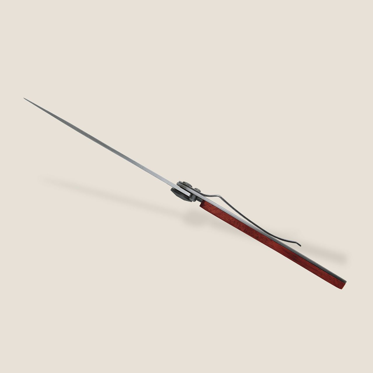 Dieses Deejo Messer ist mit massivem Korallenholz (oder Padouk) verziert. Diese Holzart wird wegen ihrer wertvollen roten / bernsteinfarbenen Akzente (daher der Name), ihrer Robustheit und ihrer ausgezeichneten Feuchtigkeitsbeständigkeit in der Messerschmiedekunst seit Langem geschätzt. Hier unterstreicht es auf wunderbare Weise die Eleganz eines Deejo Messers.