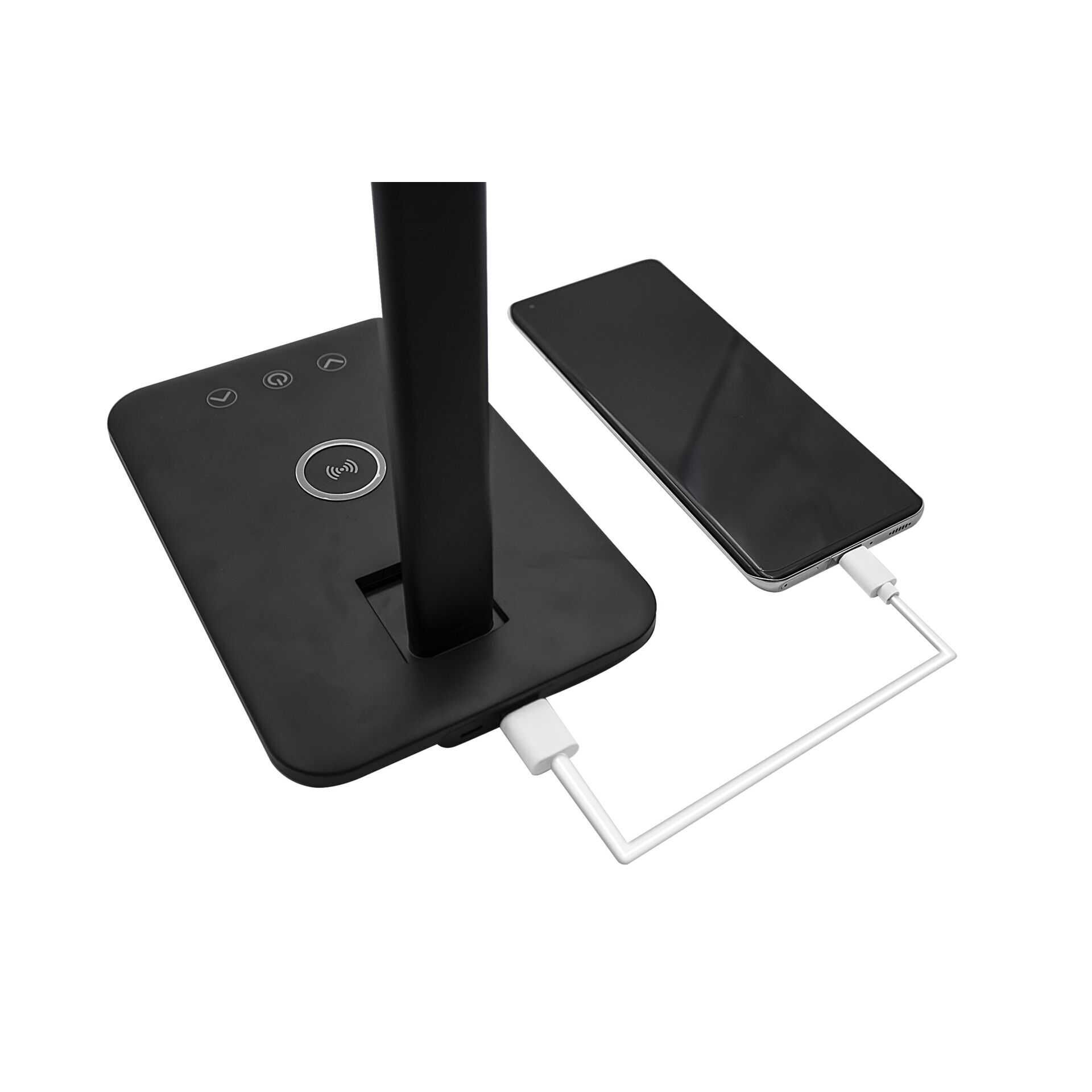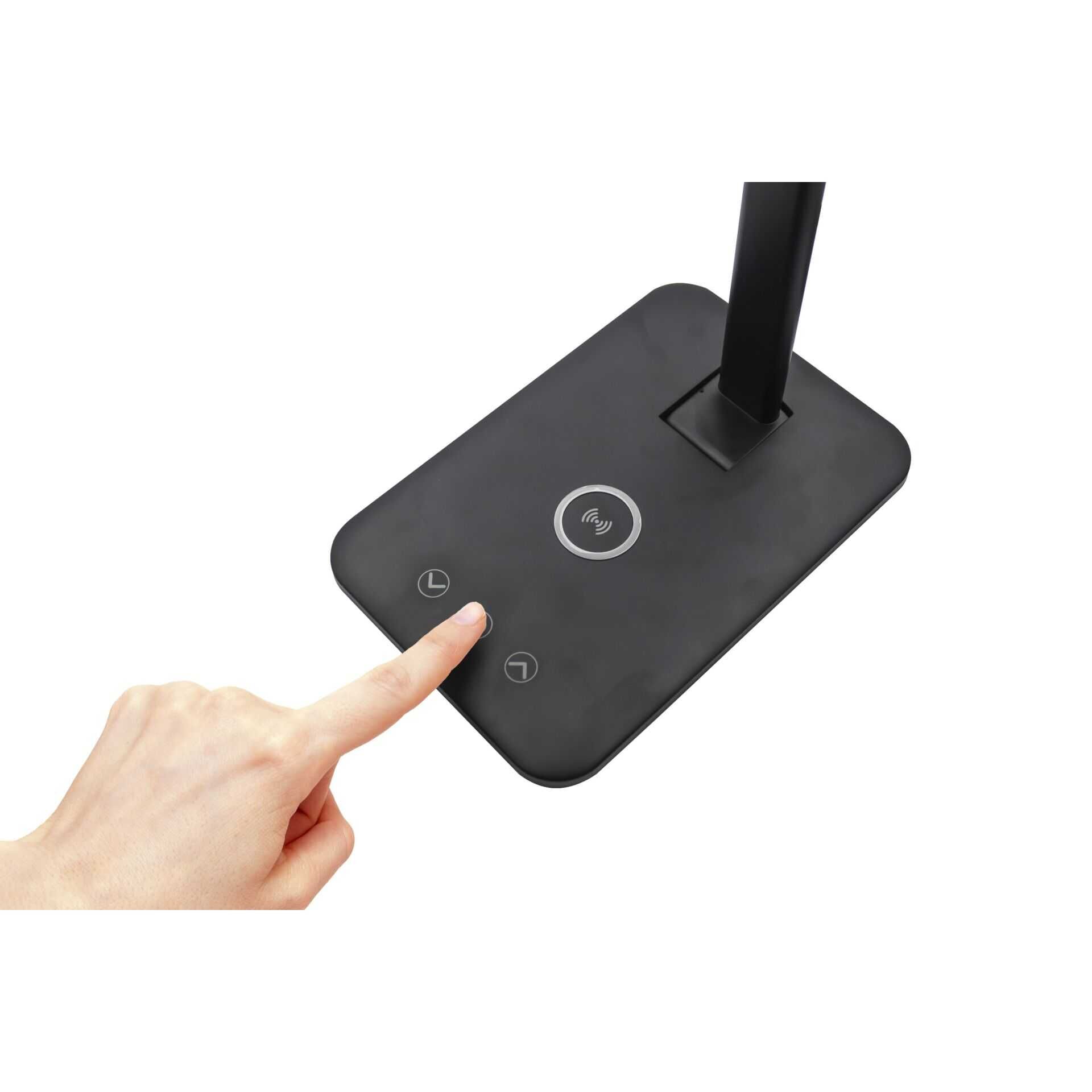 LED-Tischlampe mit integriertem kabellosem QI-Ladegerät.