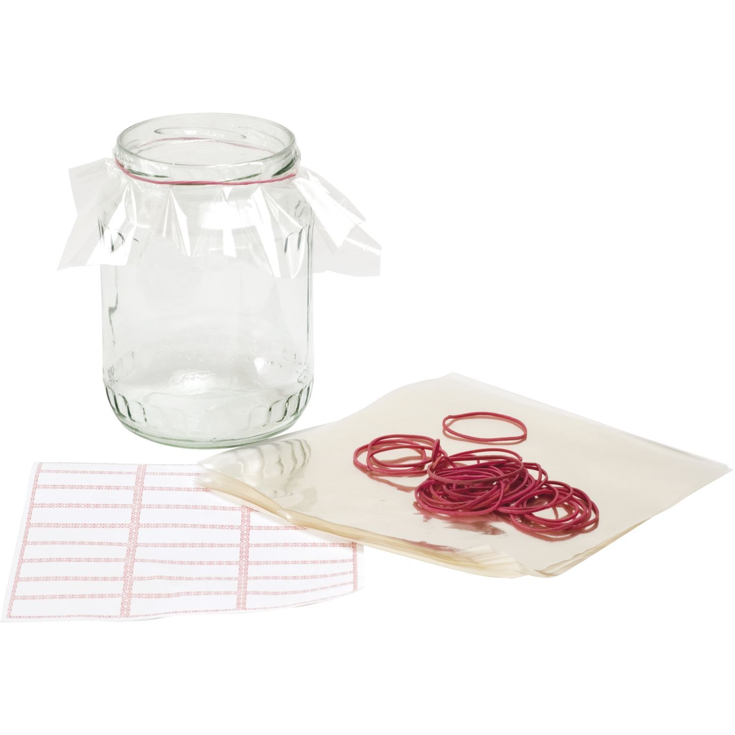 bestehend aus je 25 Stk. gebrauchsfertigen Zellglaszuschnitten, Gummiringen, Etiketten selbstklebend transparent