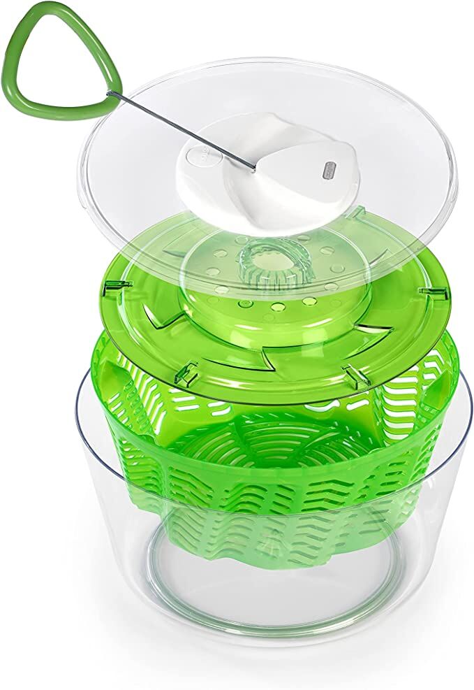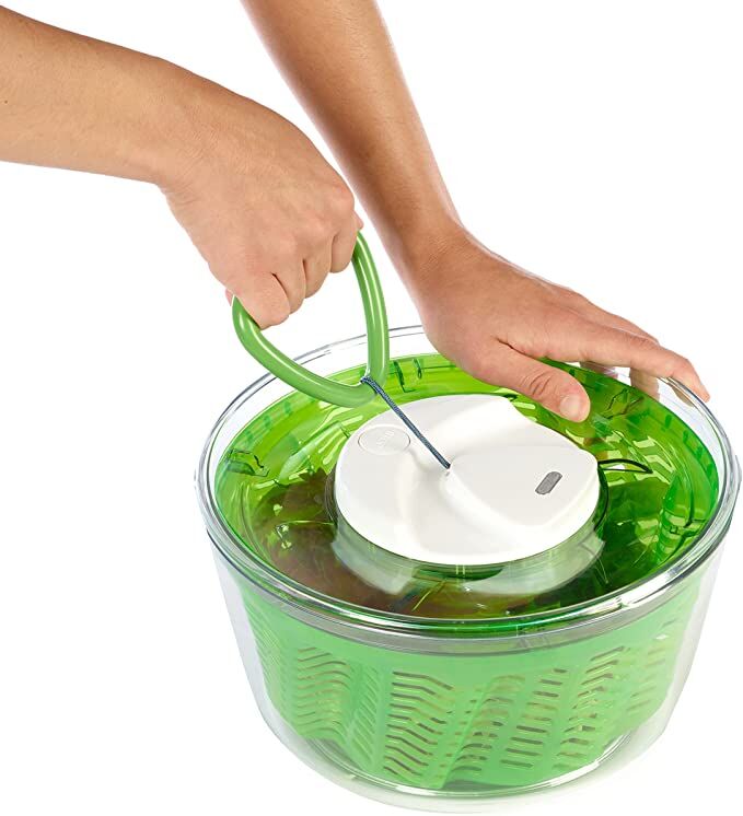 Zyliss brachte seine erste Salatschleuder 1978 auf den Markt und bereichert seitdem die Küchen der Kunden mit der besten Technologie. Die ursprüngliche Easy Spin Salatschleuder ist seit Jahren ein Verkaufsschlager und wurde vor kurzem mit einem neuen ergonomischen Griff aktualisiert. Ziehen Sie einfach am Griff, um gewaschenen Salat zu schleudern, und drücken Sie die Stopp-Taste, um die Salatschleuder schnell anzuhalten, so dass die Salatblätter aufgelockert werden. Nach dem Trocknen kann die Schüssel zum Servieren benutzt werden.