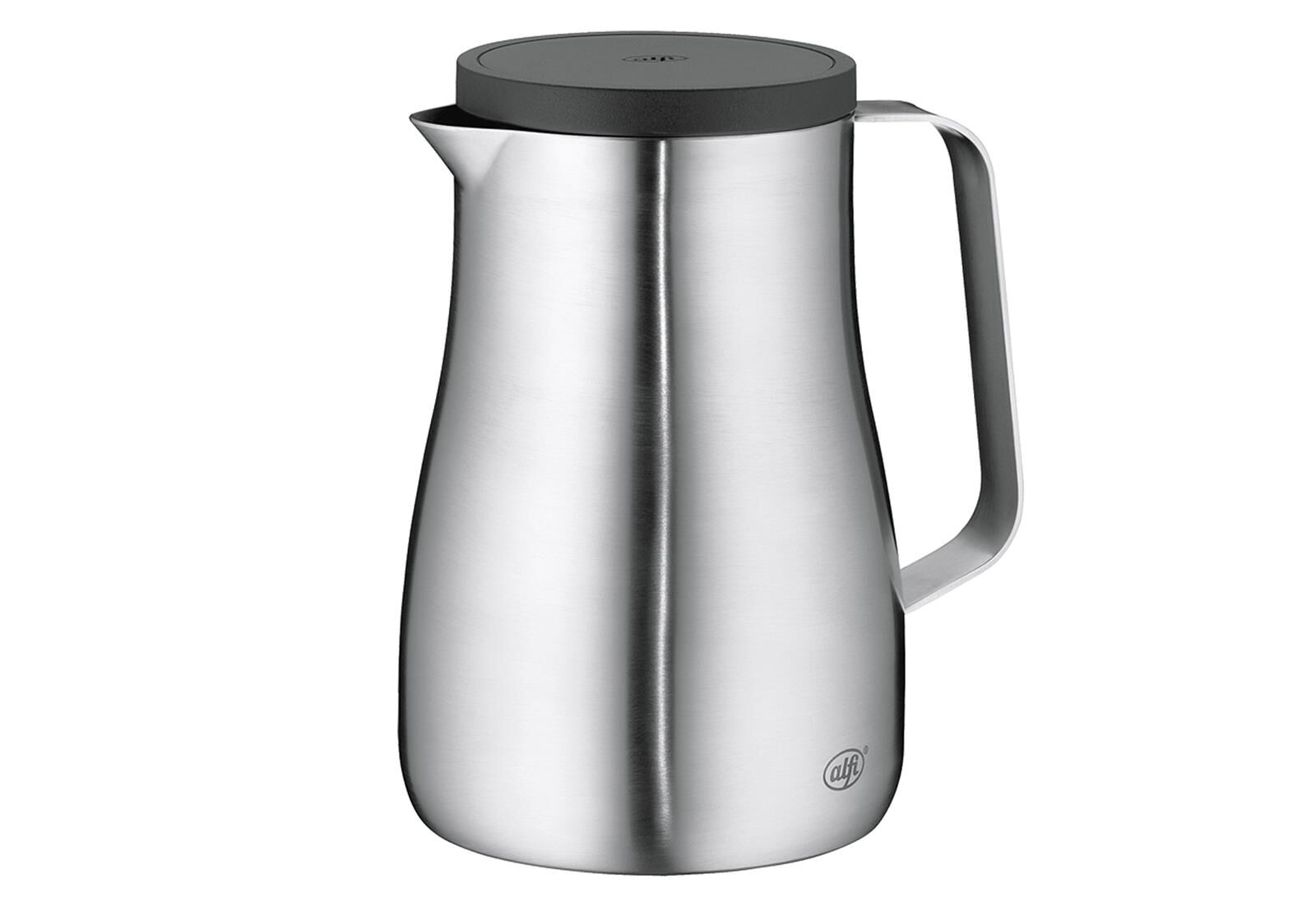 Funktionales Designstück by pearl creative Christian Rummel & Tim Storti. Hochwertiger doppelwandiger Edelstahl mattiert. Hält 12 h heiß oder 24 h kalt. Dichtschließender Drehverschluss. Thermisch desinfizierbar bis zu 93°C (spülmaschinenfest).