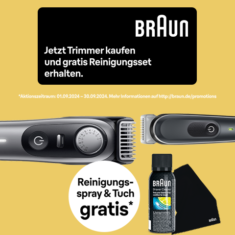 Braun Aktion: Jetzt Trimmer kaufen und gratis Reinigungsset erhalten.