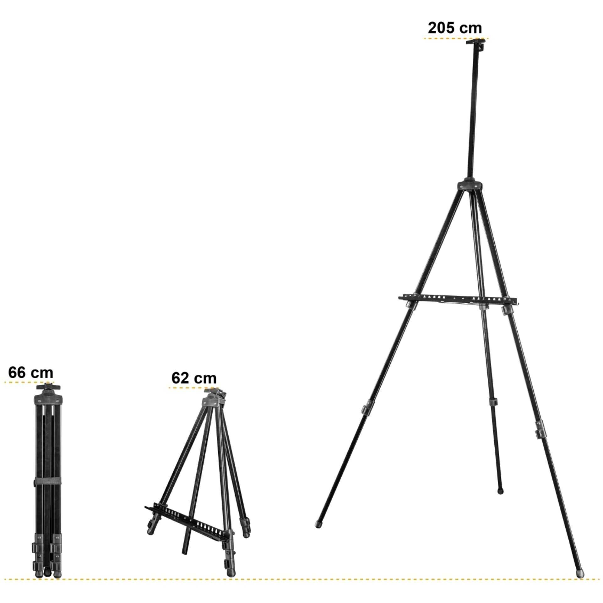 - Max. / Min. Bauhöhe Staffelei: 205 / 62 cm
